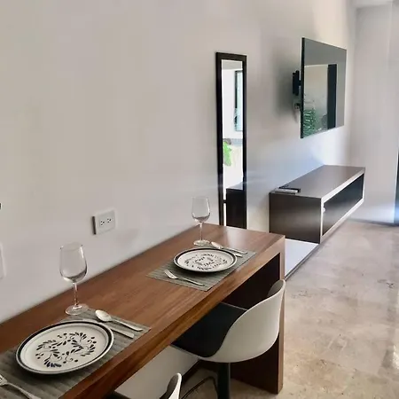 Een keuken met koffie- en theefaciliteiten, een koelkast, een oven is beschikbaar als onderdeel van de zelfvoorzienende voorzieningen van deze accommodatie. 218 Stylish Studio Delux Condo Fast Wifi is op 51 minuten rijden van Playa del Carmen luchthaven.